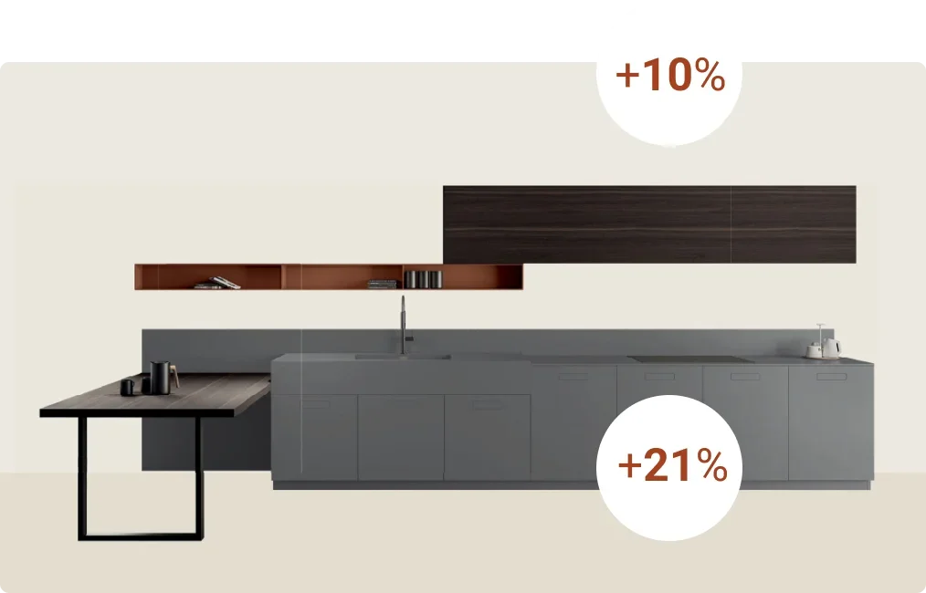 Composit design has allowed for more than 21%* extra space in base units and more than 10%** extra space in wall units.