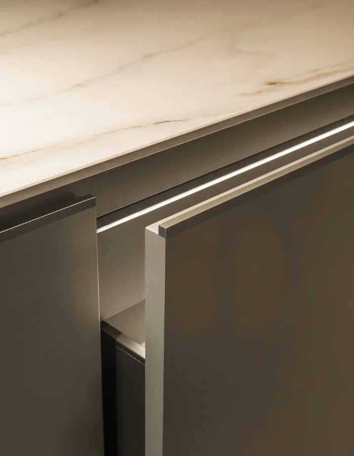 Composit collections offer an extensive range of finishes for doors and internal containers. For veneered finishes, it’s possible to choose options even beyond the catalog. This makes it possible to create truly unique kitchens every time!